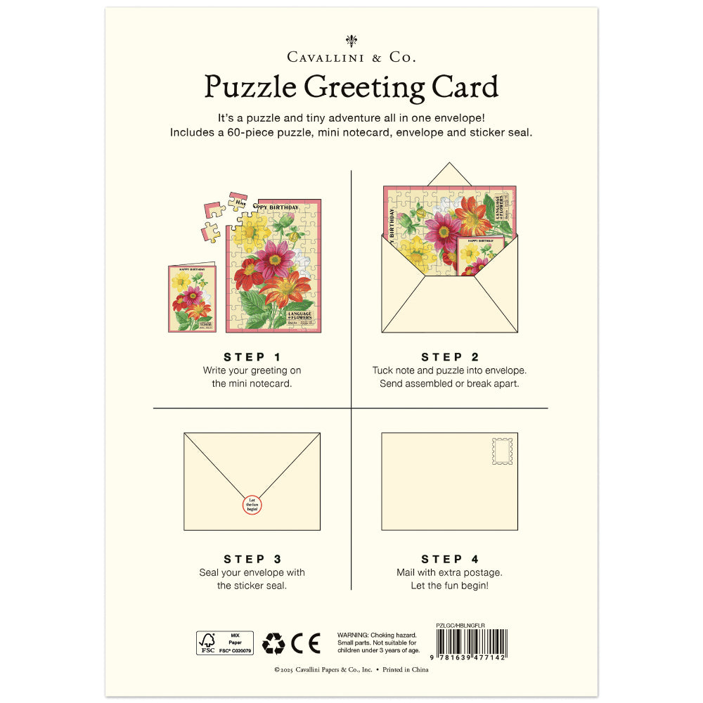 Cavallini – Puzzle Greeting Card 60 Pc “Language of Flowers”: A Blooming Birthday Surprise